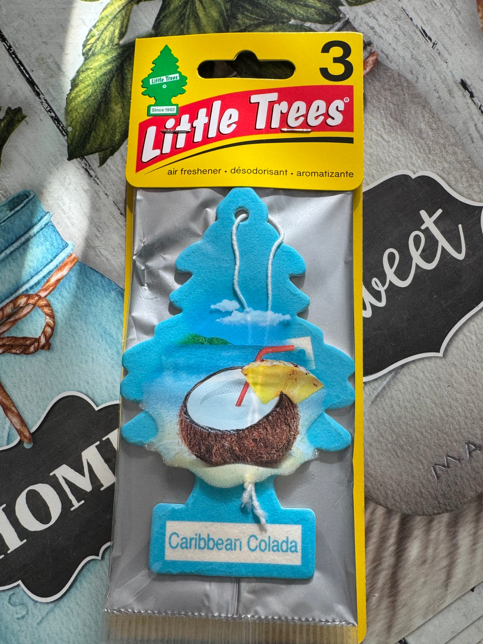 Bay machin ou yon sant ekzotik ak *Little Trees Caribbean Colada*! Parfè pou fanatik bon sant fwi, li melanje *kokoye fre ak anana juicy* pou yon sant ki fè w sonje vakans nan Karayib la.